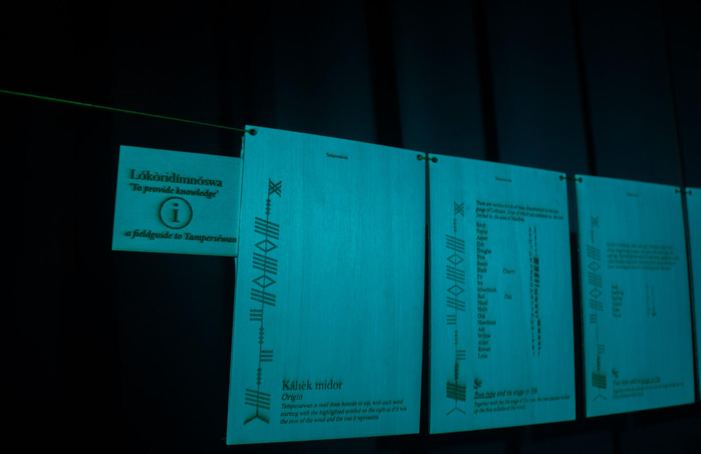 Tamperséwan, the language of trees, provides insights into human interference throughout the tree’s lifespan. Comprising numerous layers of storytelling and linguistic metaphysics, the installation invites users to enter a realm of curiosity and awe teaching or sparking the interest in the complexity of the life of a tree and the interference humankind had on its life. This sense of wonder ignites an interest in understanding the workings of this language system, prompting users to decide whether to delve into the cultural narrative of a tree’s life or simply interact with it and observe how the words evolve over time. Ultimately, the experience culminates in users becoming more engaged and immersed, deepening the sense of wonder with which they initially entered the installation.