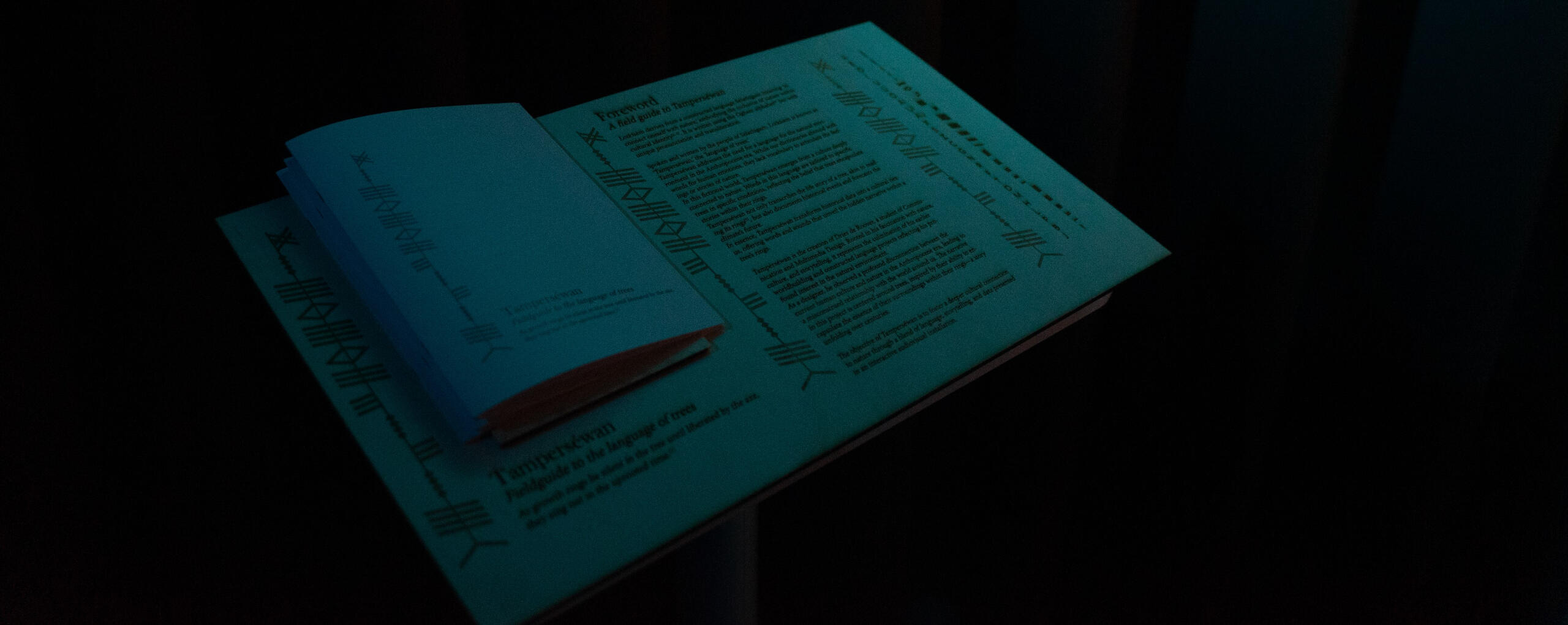 ᚛ᚃᚒᚇᚌᚑᚎᚓᚅ (Lot•kí•sèm) translates to the concept of cultural natureconnectedness. This project aims to bridge the gap between humans and trees in the natural environment through language using an ambiguous approach¹. To achieve this, the Language for Trees called Tamperséwan was meticulously constructed based on an Irish writing system called Ogham. Using data inspired by tree rings, it sparked the creation of a narrative that is both readable and audible through an interactive installation telling the life's story of a tree.